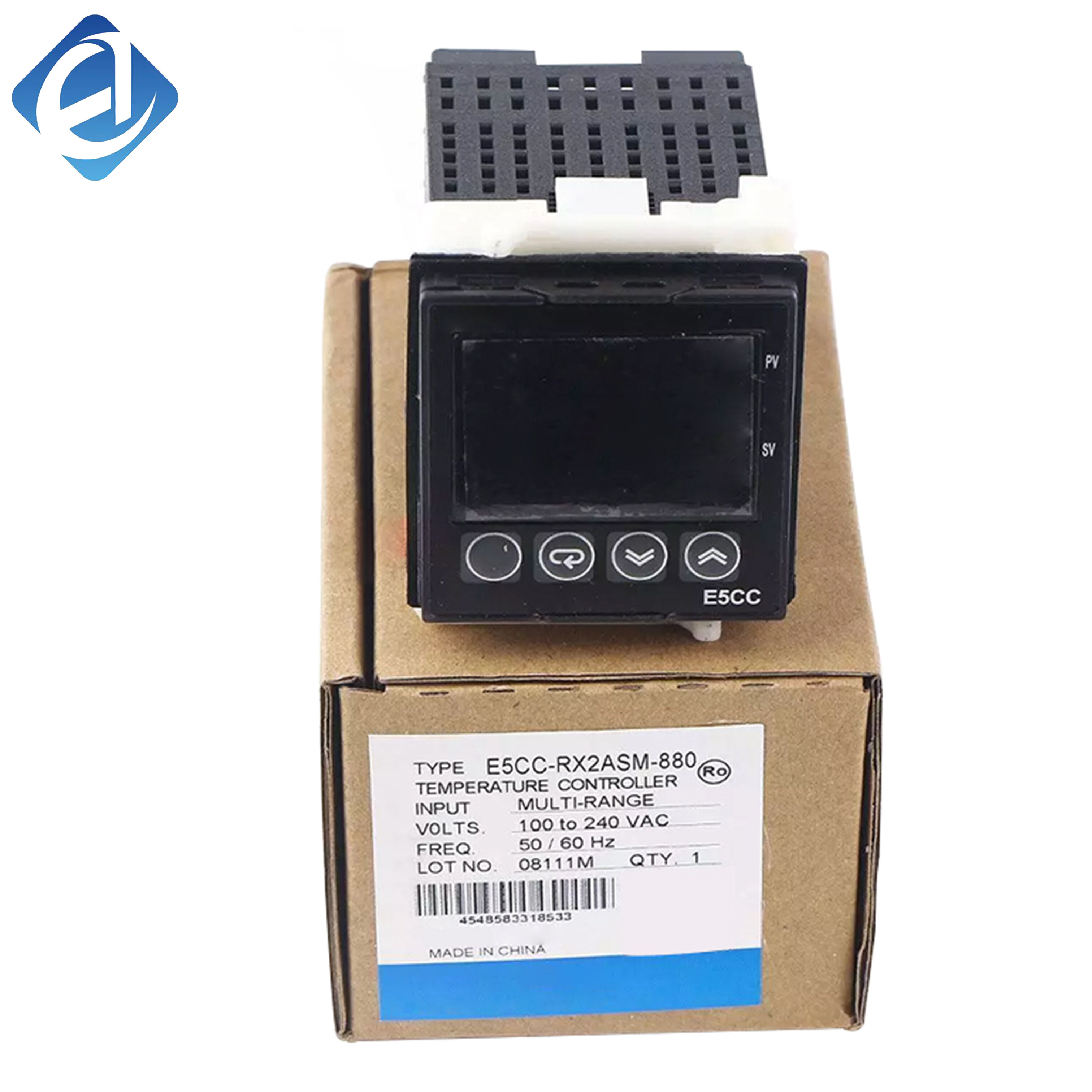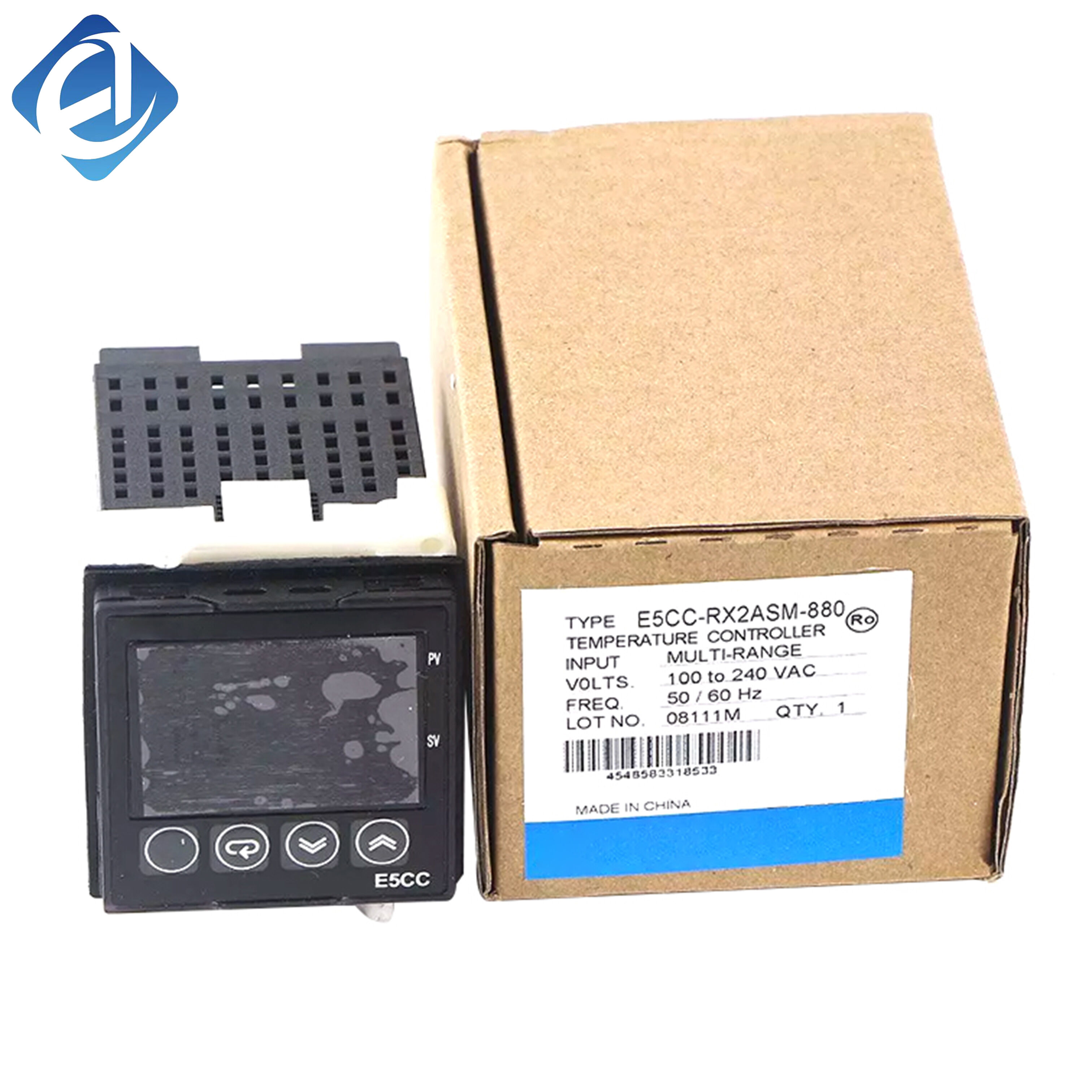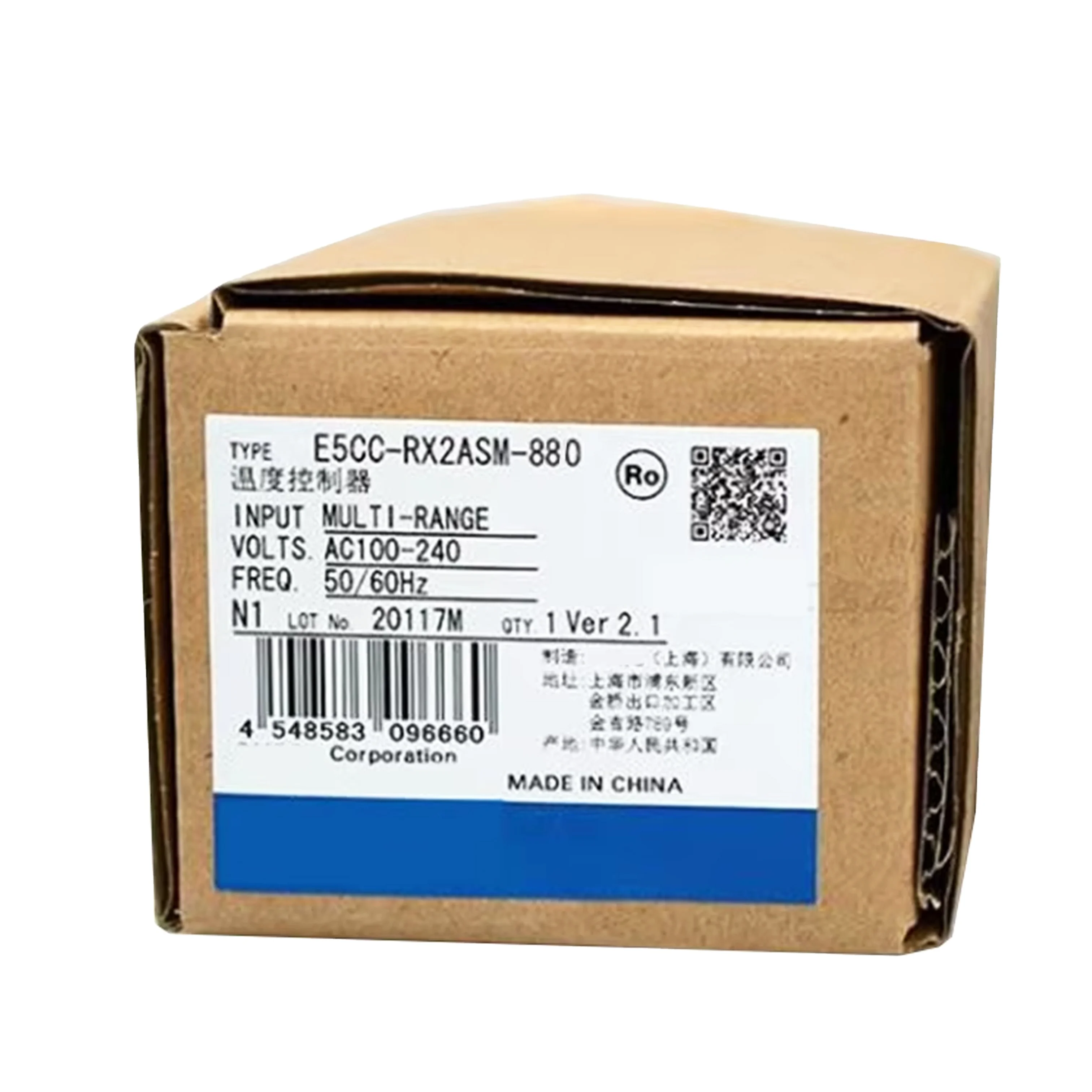 New Original E5CC-RX2ASM-880 Omron E5CC Series Digital Temperature Controller, for industrial temperature monitoring and control. 48×48mm size, 100-240VAC supply. Universal input (thermocouple/RTD/analog), relay output, white PV display.